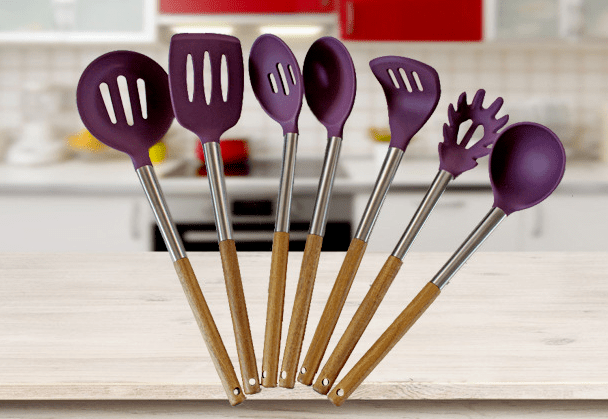 400-0769-878硅胶厨具套装的妙用!炒菜不伤锅、耐高温、易清洗、分量轻!相信每一个刚开始炒菜的小面对家中笨重的餐具是,都是很无奈,应该这种餐具不仅笨重,而且还不好炒菜,久了手臂还会酸胀,这时,需要的就是一套好的餐具。那么什么类型的餐具值得推荐呢,接下来由东莞伟顺硅胶小编为大家解答。